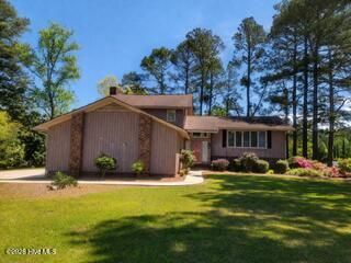 Welcome to this charming split-level home situated on the 18th fairway of Wilson Country Club.Set on over half an acre, this spacious property offers an abundance of cozy living areas and room to grow.Inside, you'll find a generous den with a warm, inviting fireplace, a formal dining room, and a well-appointed kitchen featuring ample cabinetry and extensive counter space. It's perfect for hosting gatherings of family and friends. The kitchen opens onto a beautiful deck overlooking the backyard and the golf course?an ideal spot to relax or entertain.This home is filled with potential and ready for your personal touch. Don't miss your chance to enhance and enjoy all that this wonderful property has to offer!